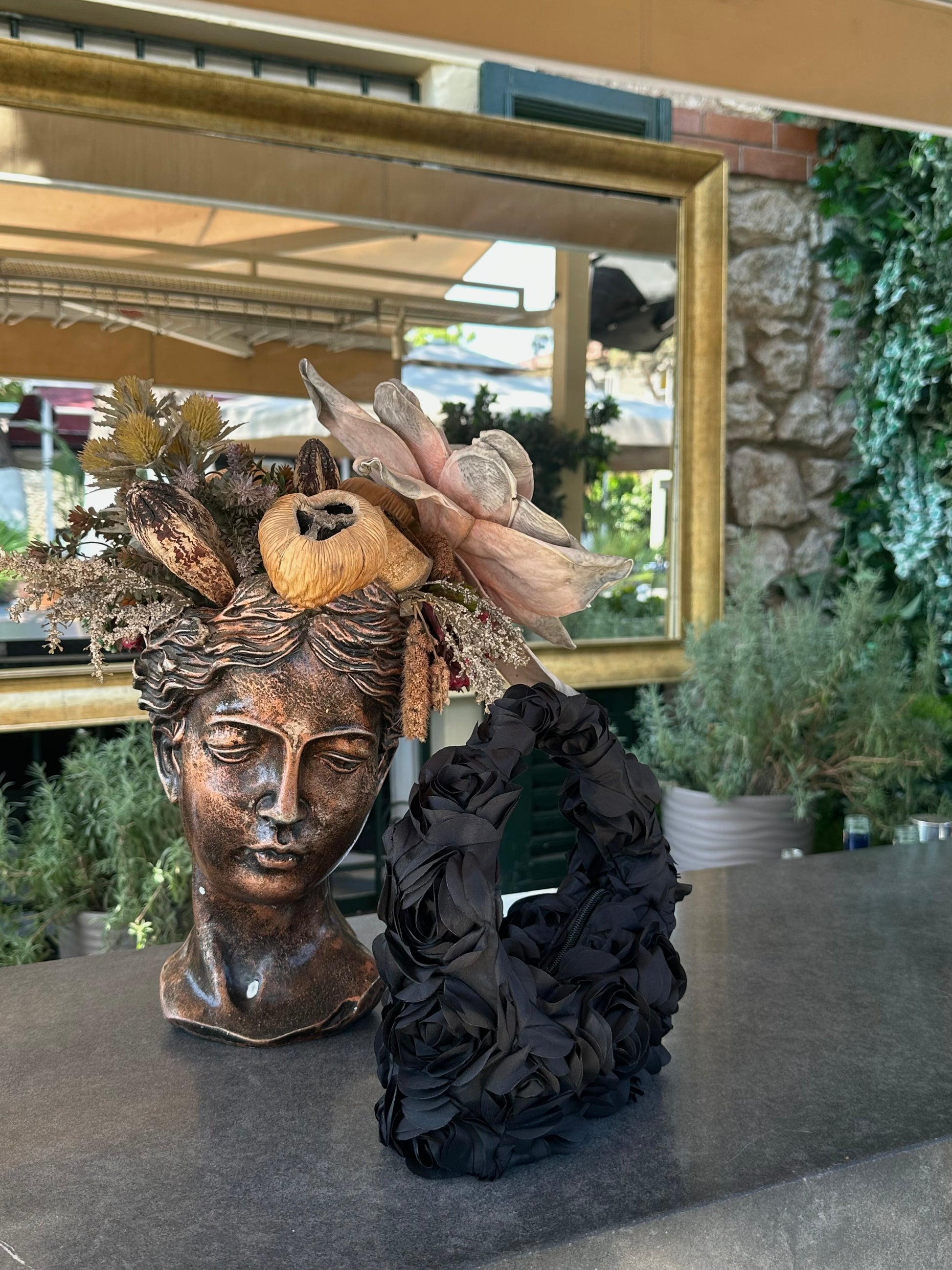 Tamamen siyah güllerle bezenmiş, sıra dışı bir duruş.